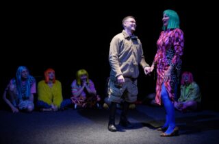 Це вистава про зустріч із тим, що ми зазвичай уникаємо. Про діалог із власною темрявою, яка виявляється не фантомом минулого, а співрозмовником сьогодення. На сцені оживає простором, де особисте стає політичним, а історичне зіштовхується з інтимним. Тут звучать цитати, гасла, спотворені голоси та галюцинації – як відбитки епохи кризи, у якій ми живемо. «Робота з Тінню» – це дія, сповнена сумніву, болю й іронії, але водночас – опору, сміху й пошуку сенсу. Це спроба назвати темряву на ім’я, увійти в страх і віднайти там силу для трансформації.